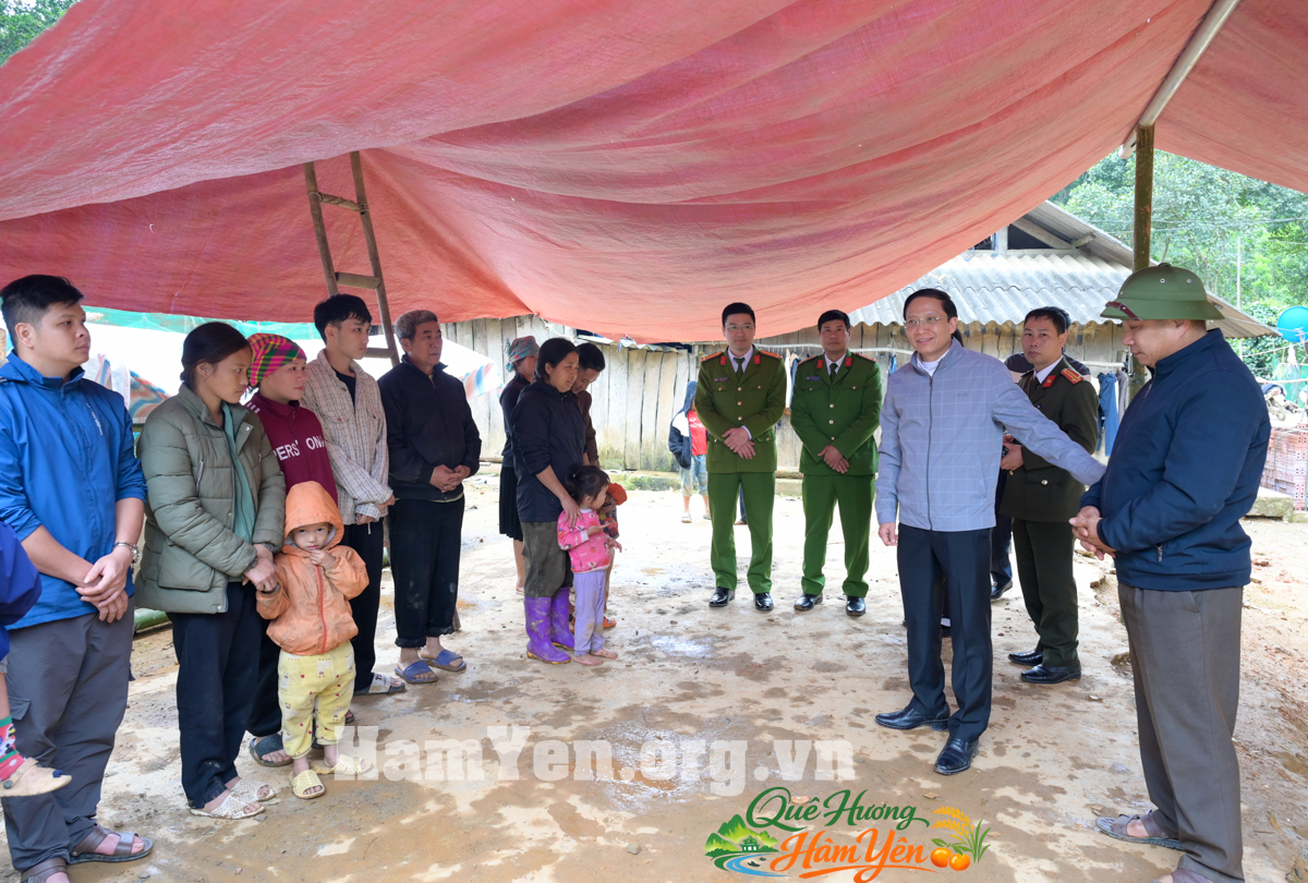 Đồng chí Bí thư Đảng uỷ Mai Hồng Hà trao đổi, động viên người dân trong thôn.