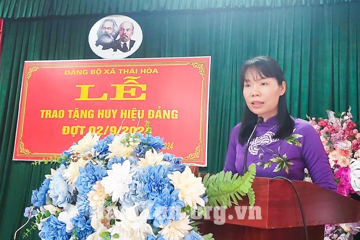 Trong đợt này, Đảng bộ xã Thái Hoà có 11 đảng viên được trao huy hiệu Đảng, trong đó 2 đảng viên được tặng Huy hiệu 60 năm tuổi Đảng, 2 đảng viên được tặng Huy hiệu 55 năm tuổi Đảng, 1 đảng viên được tặng Huy hiệu 45 năm tuổi Đảng, 2 đảng viên được tặng Huy hiệu 40 năm tuổi Đảng và 4 đảng viên được tặng Huy hiệu 30 năm tuổi Đảng.