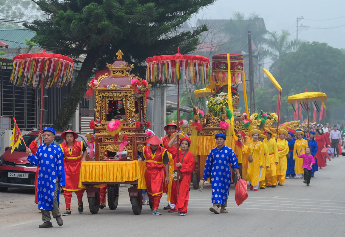 Ngay từ sáng sớm, không khí lễ hội đã diễn ra trang nghiêm với nghi thức rước kiệu truyền thống từ Đền Bắc Mục về Đình Thác Cấm, thu hút sự tham gia của đông đảo nhân dân trong trang phục truyền thống, tạo nên không gian văn hóa đặc sắc, đậm đà bản sắc.