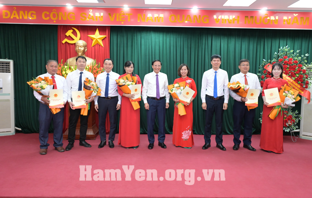 Lãnh đạo Phòng Văn hoá – xã hội công bố các Quyết định: Đồng chí Nguyễn Anh Tú, công chức Phòng Kinh tế xã Hàm Yên, được bổ nhiệm giữ chức vụ Phó Trưởng phòng Kinh tế xã Hàm Yên. Đồng chí Nguyễn Thị Quyên, thôi giữ chức Hiệu trưởng Trường THCS Tân Yên, được điều động và bổ nhiệm giữ chức Hiệu trưởng Trường THCS Tân Loan. Đồng chí Đỗ Thị Trang, được bổ nhiệm lại giữ chức vụ Phó Hiệu trưởng Trường Mầm non Tân Yên. Đồng chí Hà Thị Quế, được bổ nhiệm lại giữ chức vụ Phó Hiệu trưởng Trường Tiểu học Tân Loan. Đồng chí Trần Mạnh Hùng, được bổ nhiệm lại giữ chức vụ Phó Hiệu trưởng Trường Tiểu học và THCS Việt Thành. Đồng chí Đặng Văn Ngân, được bổ nhiệm lại giữ chức vụ Phó Hiệu trưởng Trường Tiểu học Tân Loan.