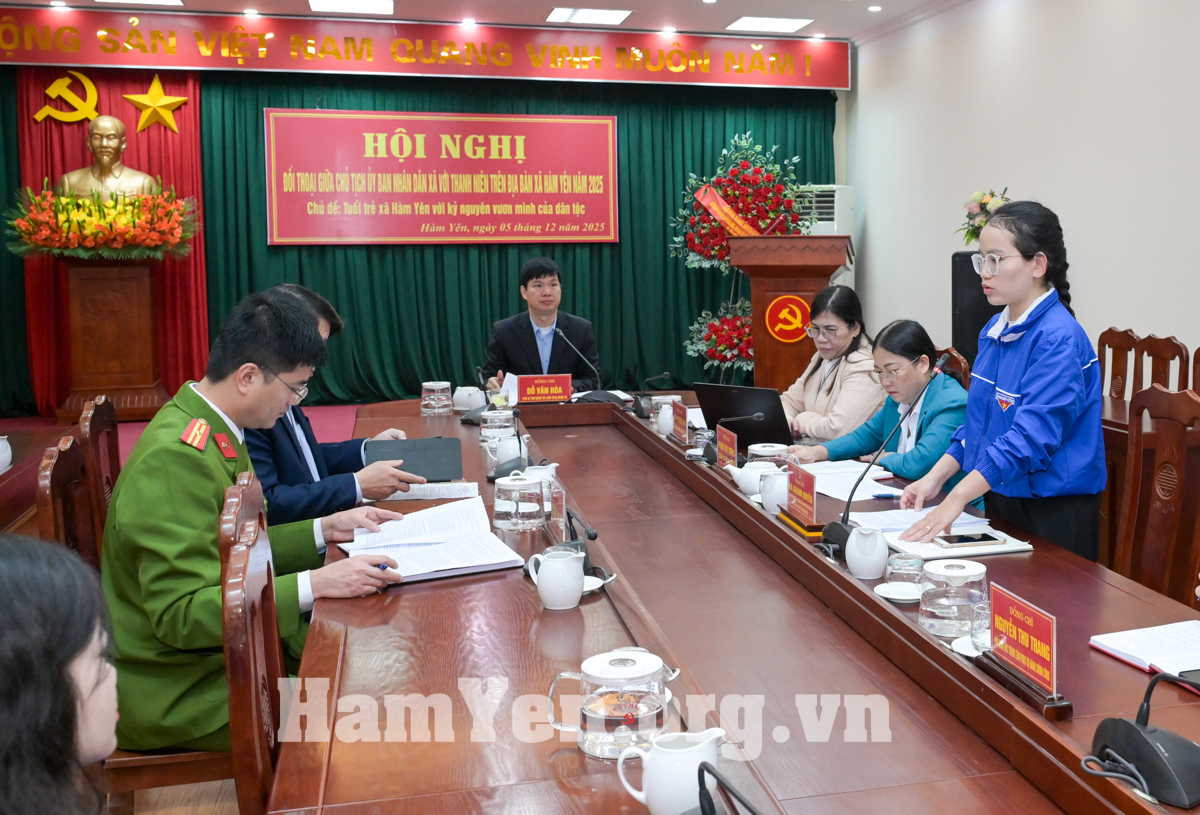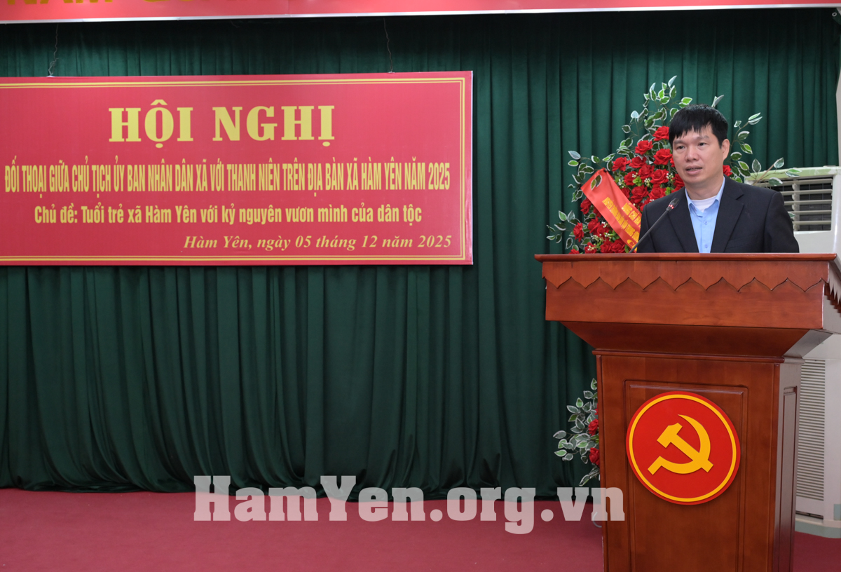 Phát biểu khai mạc, đồng chí Chủ tịch UBND xã nhấn mạnh: đối thoại với thanh niên là diễn đàn quan trọng nhằm lắng nghe tâm tư, nguyện vọng, đề xuất của thế hệ trẻ; khẳng định vai trò thanh niên là lực lượng tiên phong trong thời kỳ chuyển đổi số, phát triển kinh tế - xã hội và xây dựng văn hóa con người Hàm Yên trong giai đoạn mới.