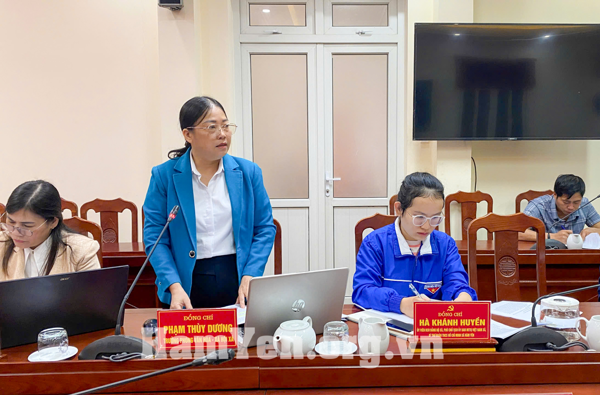 Lãnh đạo Phòng Văn hoá - Xã hội xã phát biểu tại Hội nghị.