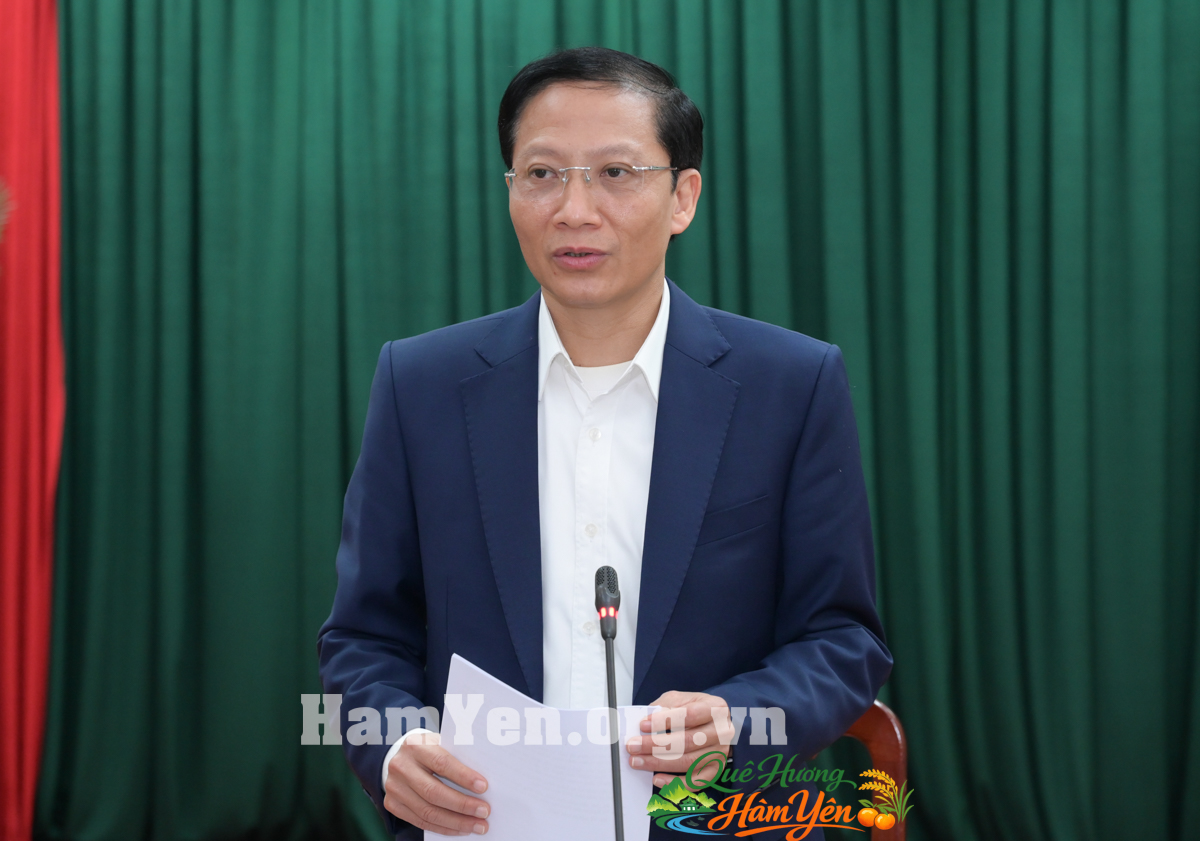 Đồng chí Mai Hồng Hà, Ủy viên Ban Chấp hành Đảng bộ tỉnh, Bí thư Đảng ủy xã Hàm Yên chủ trì Hội nghị.
