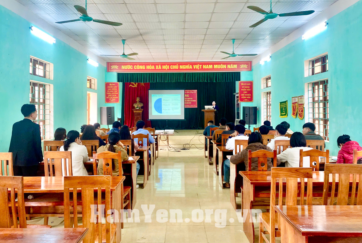 Lãnh đạo Trung tâm Chính trị Hàm Yên tao đổi cùng các học viên.