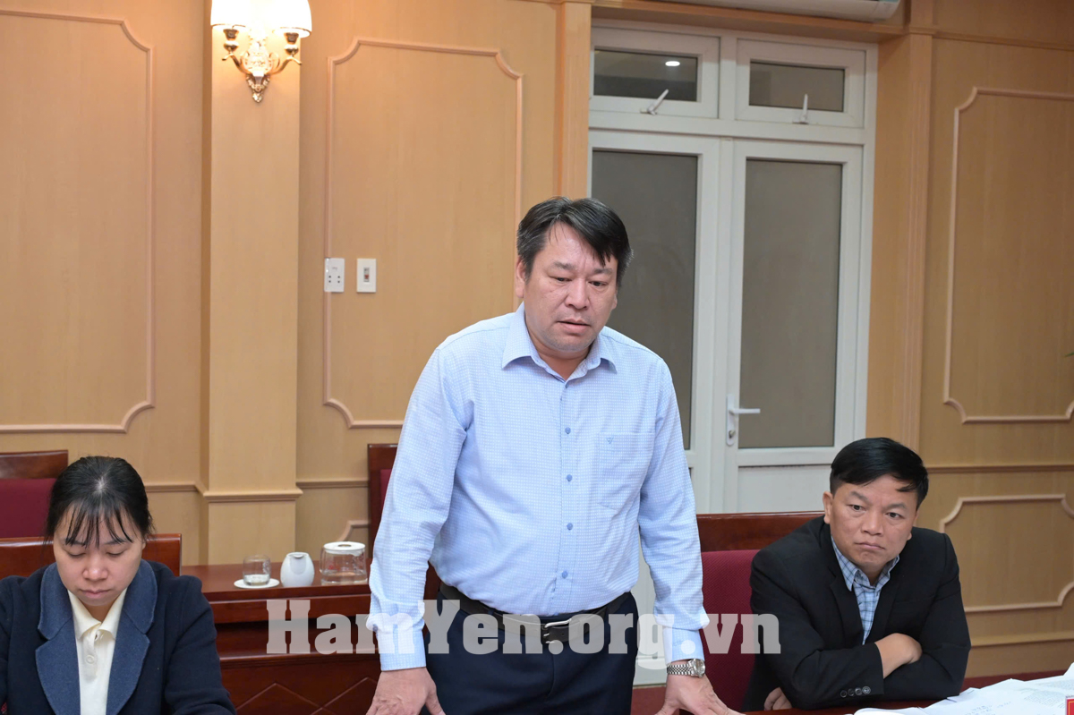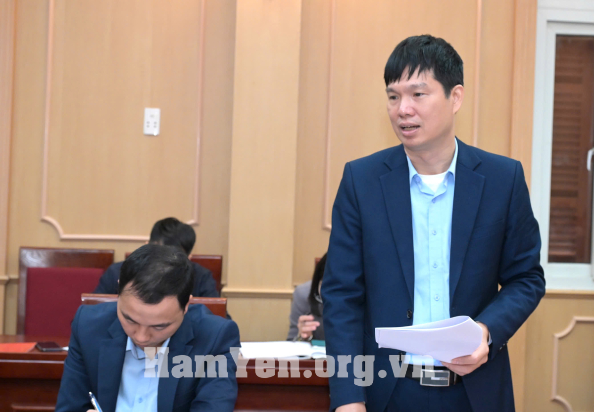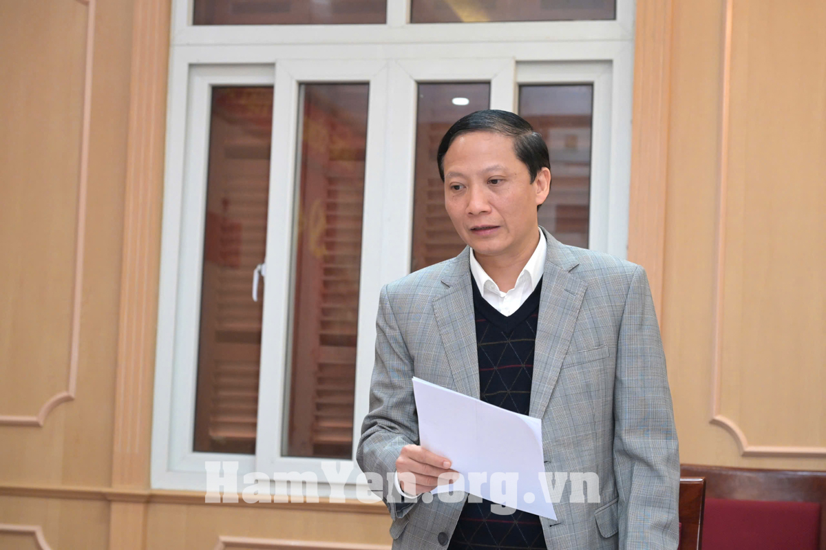 Đồng chí Chủ tịch UBND xã Hàm Yên Đỗ Văn Hoà phát biểu tại buổi làm việc.