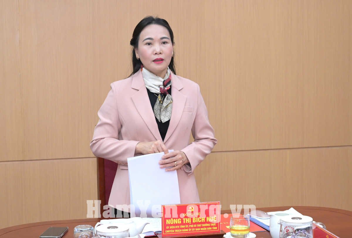Đồng chí Nông Thị Bích Huệ, Ủy viên Ban Thường vụ Tỉnh ủy, Phó Bí thư Thường trực Chuyên trách Đảng ủy UBND tỉnh Tuyên Quang chủ trì buổi làm việc.
