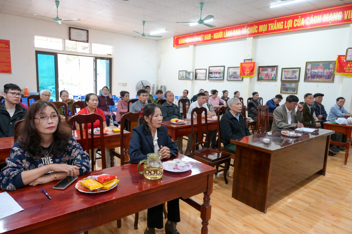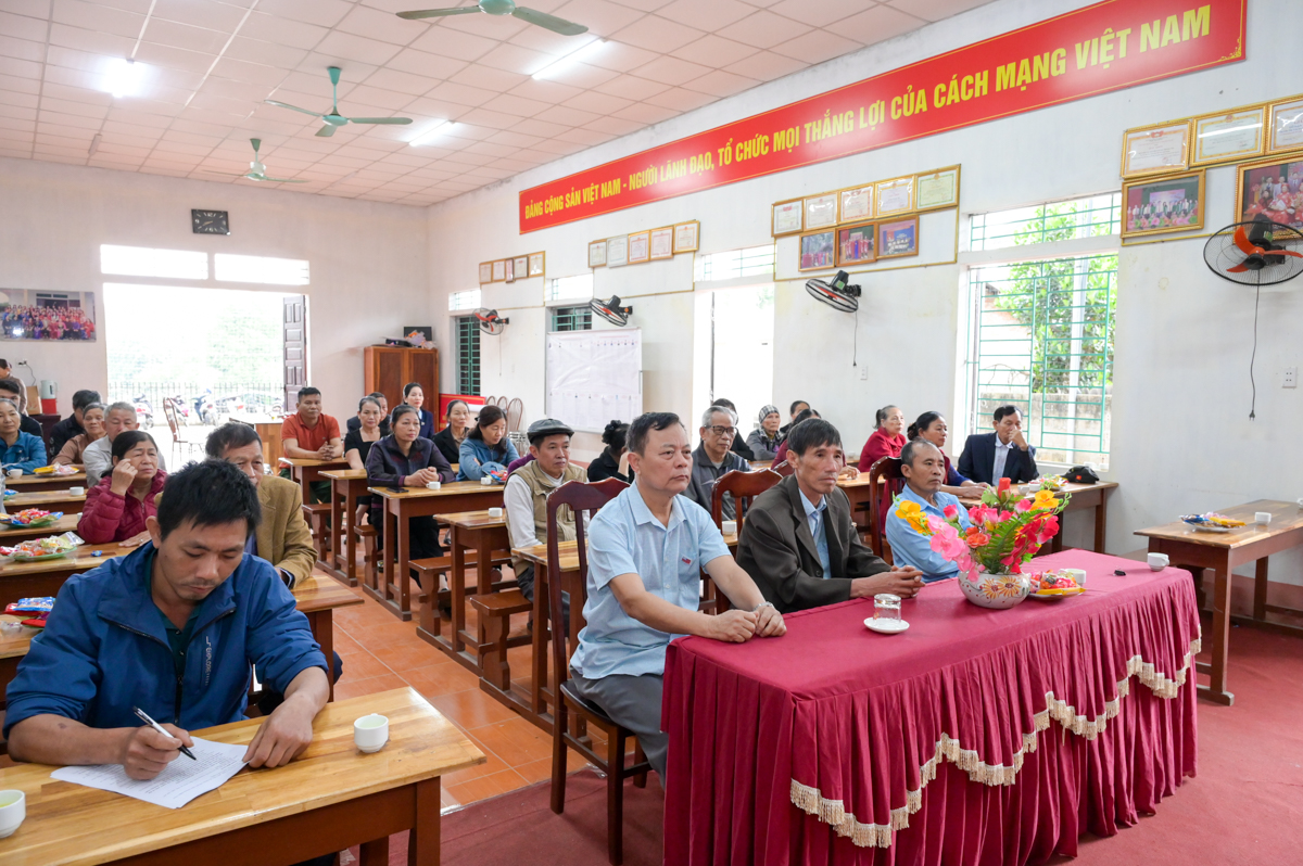 Cử tri thôn Bắc Yên thuộc đơn vị bầu cử số 4 nghe chương trình hành động của các ứng viên.